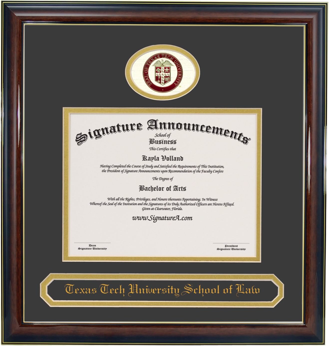 Amazon Com Signature Announcements Texas Tech University School Of Law Undergraduate Sculpted Foil Seal Name Graduation Diploma Frame 23 X 24 Gloss Mahogany With Gold Accent Sports Outdoors